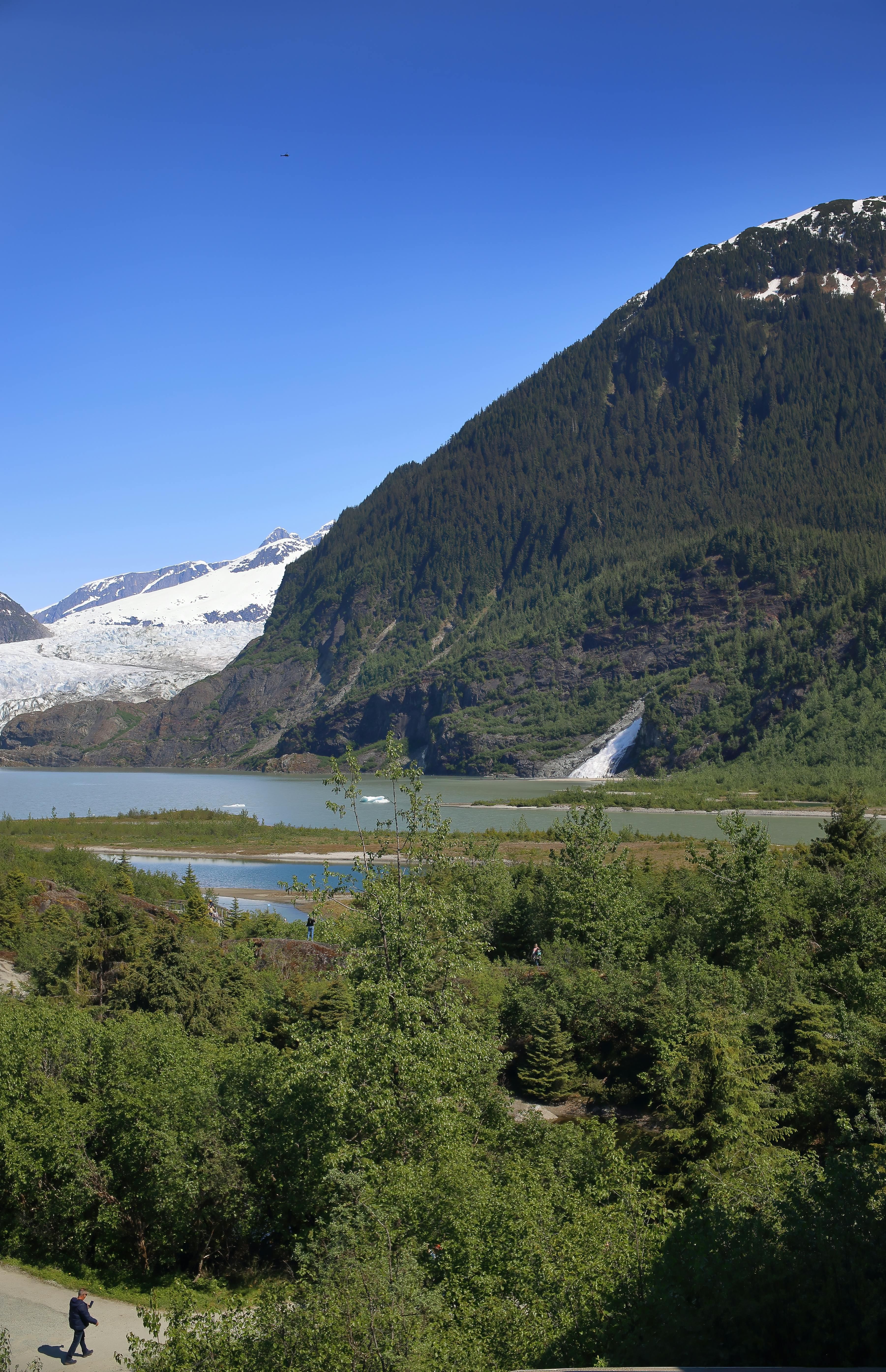 After your whale-watching adventure, head to the world-famous Mendenhall Glacier. Take in the massive and mighty glacier, an explosive river of ice with rugged crevasses and vibrant blue color. At the glacier visitor center, you will have approximately 45 minutes to explore the walking paths and the U.S. Forest Service Visitor Center.