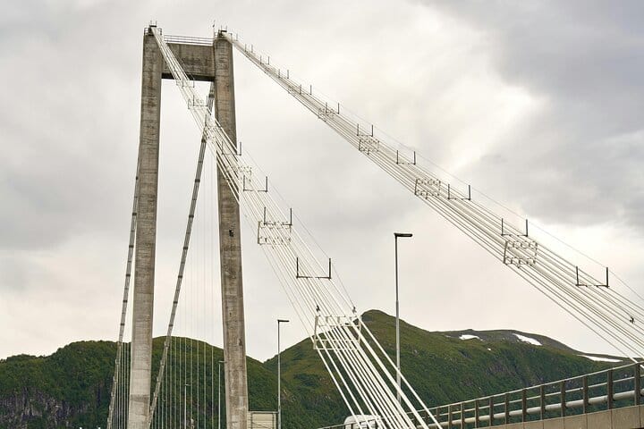 Our journey continues along the infamous bay of shipwrecks, Hustad Vika. You will notice how the landscape changes from a fertile countryside to rugged, windblown islets and skerries, before we arrive at the Atlantic Ocean Road. This impressive road counts eight bridges, including one that is 23 meters high. These bridges seem to defy nature as they wind their way along the archipelago.